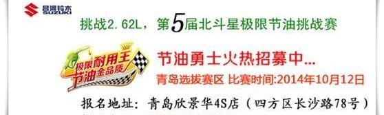 自首届北斗之星节油大赛以来,青岛新京华已成功举办了四届北斗之星省油大赛,并在比赛中取得了2.62升的好成绩。如果你有信心超越他,成为新的节油之王,那就赶紧参加我们的节油比赛吧。青岛新京华将于10月12日举办第五届北斗之星节油大赛。你不需要花一分钱。你只需要把你心爱的汽车和家人与明星朋友聚在一起,体验驾驶乐趣,交流用车体验。在这里,我们不仅举办挑战赛,还为车友和家人开展各种有趣的活动,并准备了丰富的奖品!比赛当天,所有参赛客户将获得礼品,青岛赛区冠军将获得价值1500元的豪华礼品!青岛赛区冠军可以参加区域挑战赛,并获得更高的奖励!