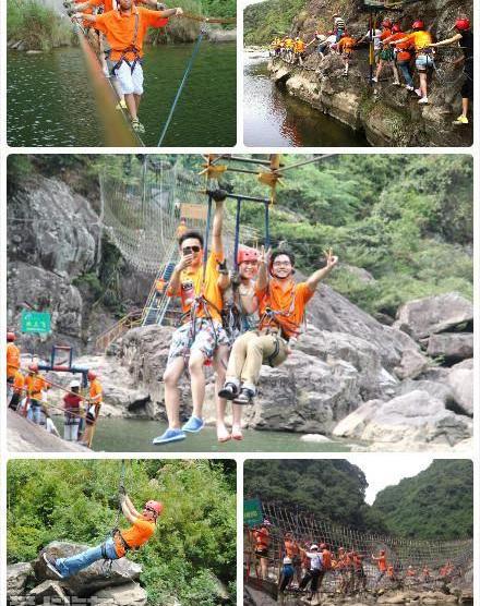 8月16日上午,所有车主聚集在一起,乘坐公交车前往福鼎九里溪。第一站是中国最大的户外运动发展基地——九里溪峡谷户外活动公园。有13个具有挑战性的项目,如爬屋檐和墙壁、用绳子穿过溪流、手牵手行走、高空滑冰、荡绳子穿过河流、在水上飞行和在空中行走。所有不认识的车主很快就熟悉了彼此,互相帮助,共同努力。当然,也有被破坏的车主故意制造危险,在他们面前发出尖叫。