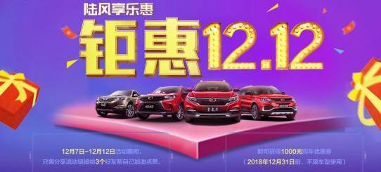 为了回报消费者的持续支持和关注,陆丰旗下车型在双十二节推出了让利和嘉宾付费活动。60万张购车券免费发放,帮助人们无忧购车。快来关注陆丰官方微信公众号,了解更多关于双十二的信息。
