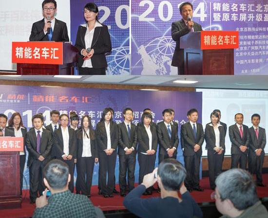 2014年1月3日,由北京百盛伟业科技有限公司主办的“京能名车汇北京片区投资推介会暨原车屏升级盈利项目及新产品推介会”在有限公司隆重举行。裕盛伟业总经理廖白生先生、深圳市精能凯达科技有限公司副总经理牛木兰先生、精能品牌华北区经理邓伟高先生以及来自北京的100多家4S集团/4S店、分销商/零售店和媒体参加了会议。
