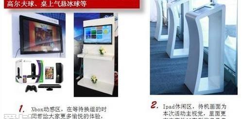 同时,活动还现场设置了个性化体验区,让您在试驾后体验奥迪Q3的“潮流”生活。体验设施:Xbox动态区、Ipad休闲区、室内高尔夫、桌上曲棍球等。