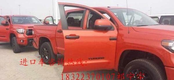 丰田坦途TRD新车到店,该车在专卖店的销售价格低廉,震惊全国。天津祥澳顺通国际贸易有限公司提供更多最新特价,这是一个难得的尽快购买机会。具体细节请致电咨询。24小时购车咨询热线:18322370107