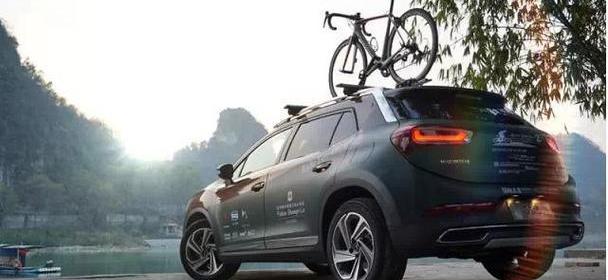 八名车手一路跟随DS 6,一路上的环境并没有让他们的战斗力下降。其中一名女性骑手也全程紧跟在部队后面。在依山傍水的街道上,自行车飞驰而过,留下了精神抖擞的身影。随着车队逐渐逼近阳朔地区,沿途的美景让人感到心旷神怡,这也证明了桂林“一流”的景观并没有白费。下午4点30分左右,骑行部队抵达阳朔,完成了70公里的第一站。