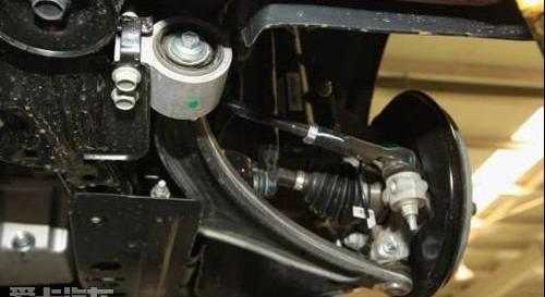 除了前后保险杠和发动机盖,迈锐宝车身上还有一些铝合金部件,只有钻入车底才能找到。
