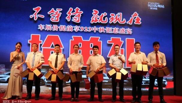 庆祝中秋节和即将到来的国庆节;9月23日,由苏州赛驰、苏州世宏、苏州世纪常熟、昆山建邦多家众泰4S店联合主办的“现在就别等了”车展在美丽的阳澄湖畔正式开幕,价格为923中秋福利。团购会当天,来自苏州各地的众多潜在客户和嘉宾齐聚一堂。多重购车优惠政策和不错的购车礼品更是让人惊喜。